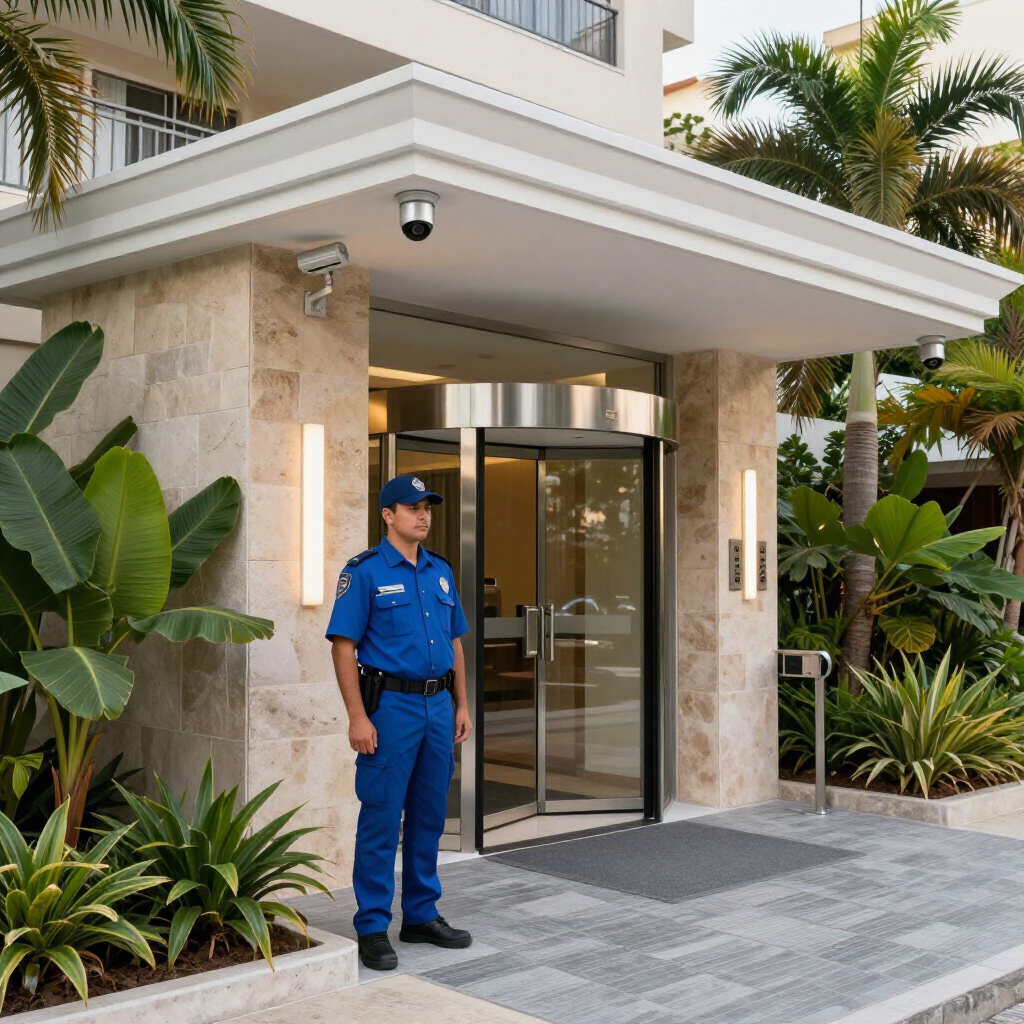 All properties are located in gated condominiums with 24/7 doormen and surveillance cameras, ensuring continuous monitoring and controlled access for guest safety.